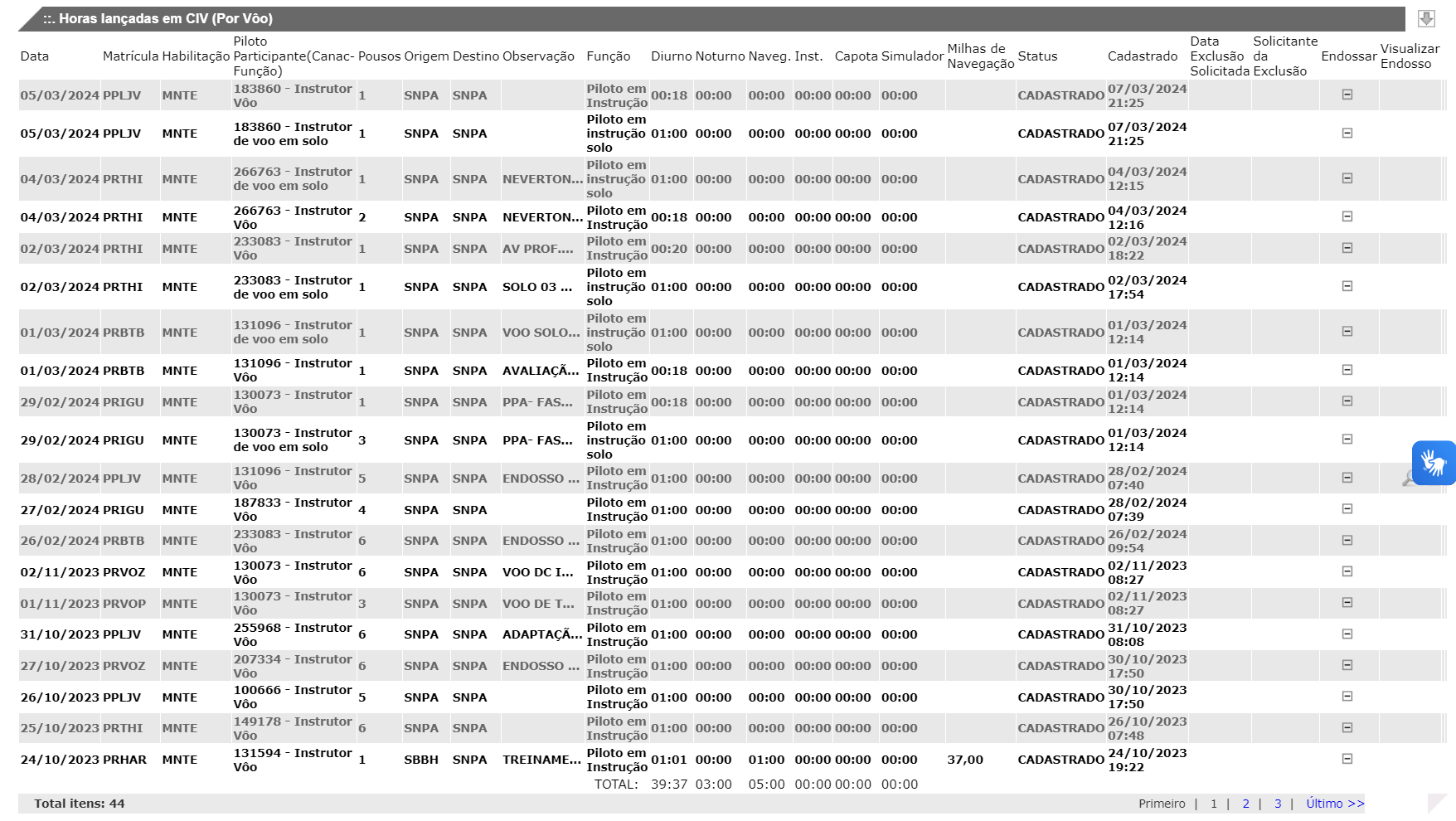 Lista de Andamentos (89 registros):| Data/Hora | Unidade | Descrição |