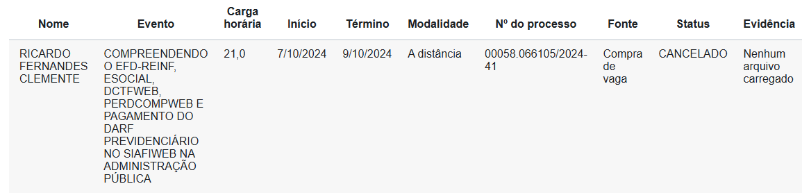 Cancelado documento 10398056 (Requerimento de Capacitação Externa).