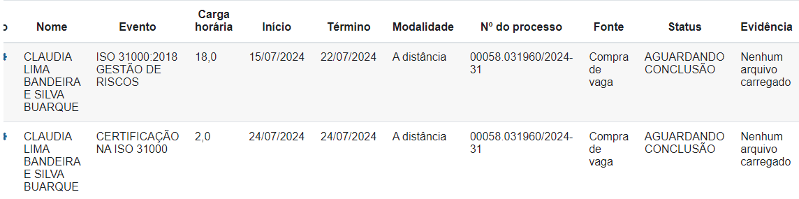 Alterada hipótese legal do documento 10138240 (Requerimento de Capacitação Externa) para Informação Pessoal (Art. 31 da Lei nº 12.527/2011)