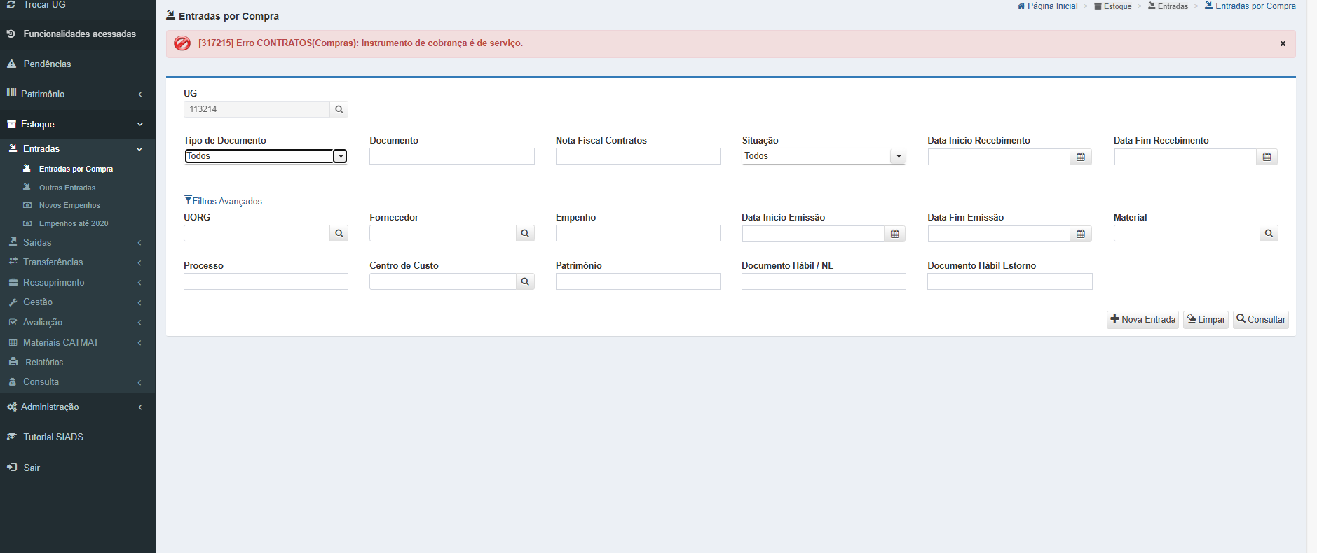Documento com erro.